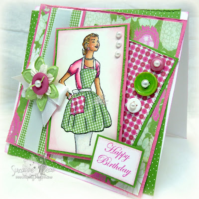 I colored her with copics (can't recall what they were exactly--R08,R04,R02 I think and BG11,BG10,BG000 for her clothing) and used W Copics for the shadows. Some stickles on her headband, coloring book and belt got a coat of stickles for sparkle. The sentiment is from PTI's "Tiny Valentines" set--I thought the sentiment was MORE than perfect. I just fell in love with this set of Elisabeth Bell for SCACD stamps and this one in particular.