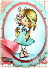 Today I’m sharing a JUST FOR FUN card…I rarely get to play just because these days (and that’s ok I’m not complaining…just stating LOL) and I picked this NEW Tiddly Inks digi stamp called “Wryn-Grow a Little Love”. This is a new character and she’s just adorable…Christy Croll always does the cutest lil’ images. I decided to make a card that’s appropriate for Valentine’s Day or Just Because!